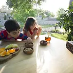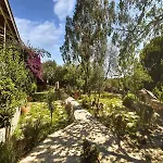 De kamers verwelkomen gasten in een patio en een zitruimte en zijn ingericht met een bank en een bureau. Er is een apart toilet en een douche, samen met een haardroger en badlakens.