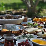 Koop' Suites / Eski Datca biedt een buffet ontbijt in het restaurant. Deze accommodatie biedt ook de lounge bar aan. Voorbeeld Turkse specialiteiten bij Elia gelegen recht uit het pand met 14 kamers.